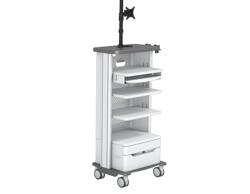 2、三層板設(shè)計(jì),底層帶有儲物抽屜,隔離變壓器電源盒可選,帶工作站底架,4寸萬向靜音輪。